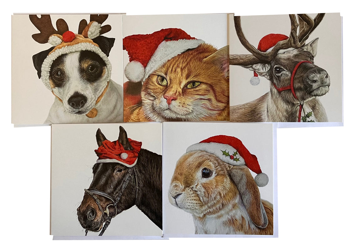 148mm square cards with white envelopes, featuring images of my original drawings, professionally printed on 300gsm Trucard.